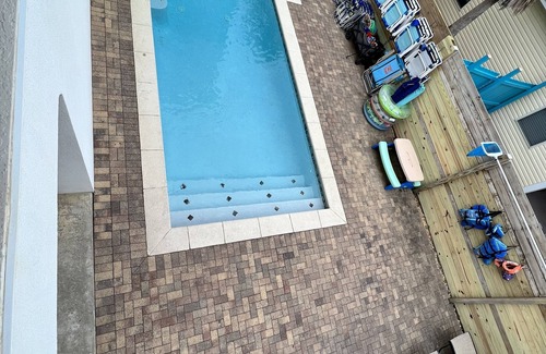 With 5 bedrooms (2 King Suites, 1 Queen, 1 Double queen, Bunk room) and 5.5 bathrooms there is plenty of room for comfort and relaxation. It's only a short 3-4 minute walk to beach gate located on our street. We also have a 10x20 backyard swimming pool! Access to our beautiful community pool as well.