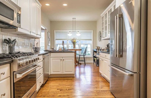 The living room provides comfort with its easy-to-use gas fireplace, Smart TV, and bookshelves filled with books, games, and DVDs. The kitchen provides a luxury Viking range/oven along with all the basic cooking utensils and more (Keurig and coffee, hosting platters, and side dishes, etc.). Not ready to relax yet, the garage contains a ping pong table for additional fun.