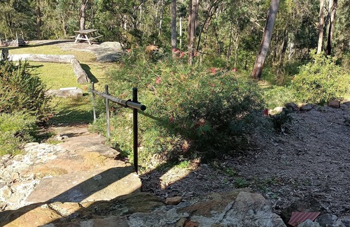 The Barn - self-contained mud brick/stone cottage. Sleeps 4 with a king bedroom upstairs and queen sofa bed downstairs. Bedroom has full bathroom ensuite and balcony in the treetops. Another toilet downstairs. Easily accommodates up to 3 more guests, with mattresses available upon request. There is a large dining table, kitchen with oven, microwave, kettle, coffee machine and cooking utensils/pans/crockery. Open plan (see photos) with lounge rooms upstairs and down, televisions in both. Bookcase upstairs with lounge chairs and desk situated to overlook the bush, down to the Grose River. The stairs from one access door downstairs lead to a large fire pit, and a bush track, 2 minutes down to the Grose River. The river is fresh water, crystal clean and fairly low all year. Perfect for swimming, walking, taking it easy. Fireplace for winter and air conditioning for summer, although mud bricks keep the temperature comfortable at about 23°C.