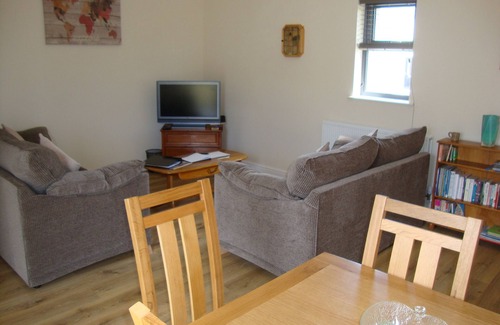 This is a spacious property with a large sunny garden laid to lawn , it also has ample off road parking with a large garage which can be used to dry wet suits and store equipment such a kayaks, surfboards etc. The property has full gas central heating and sleeps 5 and 1 infant under 2, in 3 bedrooms, 2 downstairs, one with 2 singles and the other a single, whilst the third bedroom with a King bed is upstairs.