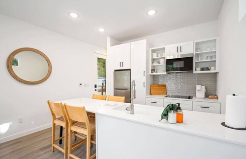 Created for connection & comfort, these 2 cottages provide the perfect blend of space & togetherness. With double the amenities - 2 king beds, 4 twin beds, 2 queen sleeper sofas, 2 living areas, & 2 fully equipped kitchens - you’ll have plenty of room to relax without feeling crowded. All the comforts of home are waiting for you the moment you arrive. Enjoy access to the shared on-site pool and pickleball court, plus private riverfront access just across the street at our sister property.