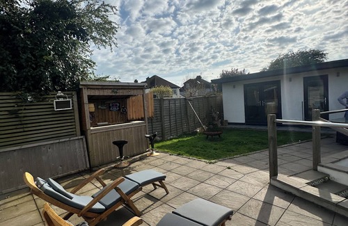 A two min walk from a local shops and restaurants and the stunning Sussex coastline. Large spacious home with private garden outside bar and summer house, a great house for family & friend gatherings.