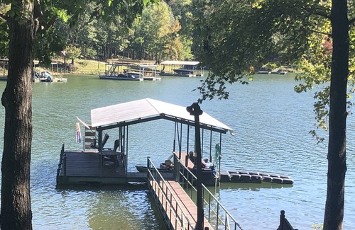 Beautiful brick home in a quiet neighborhood with easy access to I-85. 3 separate living areas (den on main level, living room on lower level and screened in porch - tons of space for families to spread out!) Lower level has a gorgeous kitchen, hardwood floors, fireplace, open dining and living room and french doors that open onto a fantastic screened in porch perfect for entertaining with lake views. Main level has master bedroom that overlooks the lake and backyard with it's own bathroom, a den & one guest bedroom. The upper level has 2 spacious bedrooms and 1 full bath. Unlike many properties on Hartwell, there's a gentle sloped, paved pathway to the single slip, covered dock with jet ski port, extremely easy access. Swim platform on dock with wide, low profile stairs makes it easy to get in and out of the water. 2 kayaks available for use that can be fished from. Power outlets on dock and lights. Beautiful, park-like landscaping surrounds the home. Fire pit overlooks the lake with large, adirondack chairs to relax in, and take in the views. Ample parking with circular driveway and parking pad.