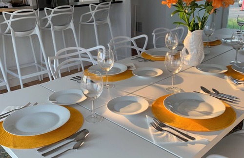 - Dishes, glassware, tableware, utensils, cookware are all supplied