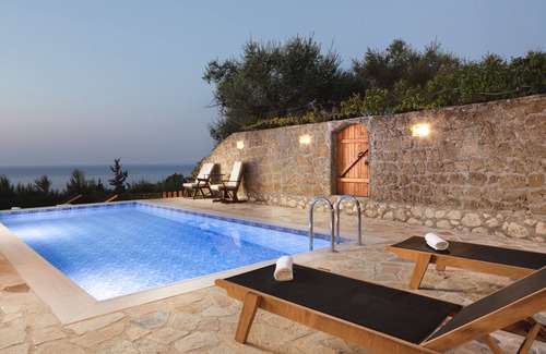 Villa Rocale has a private pool with a spectacular coastal view taking in Zakynthos town.