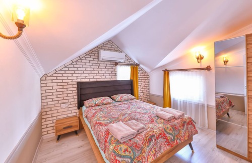 Being located at the very heart of Kaş with its stunning view, our apart offers many advantages to our guests. Our apart is only 150 meters away from Küçük Çakıl Beach (Small Pebble Beach) which is one of the most beautiful beaches in Kaş, 100 meters from the Kaş square where you can find many restaurants, cafes or bars according to your own liking. A grocery store can be found just 50 meters down the road from our apart. Our guests have the opportunity to benefit from the Phellos Hotel pool with a small fee and the hotel is within 20 meters reach from the apart. We offer you a great holiday home from where you can walk anywhere you want without being tired at all. All you need to do is to enjoy your holiday to the fullest. In addition to all of these, all kitchen utensils are available in our apart (toaster, kettle, pan, cooker, microwave, washing machine, etc.) Our rooms can accommodate up to 4 people comfortably.