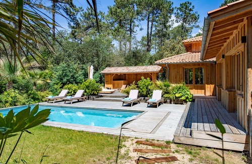 Enjoy a privileged and quiet environment around the pool and the large wooden terrace for sunny days in Cap Ferret.