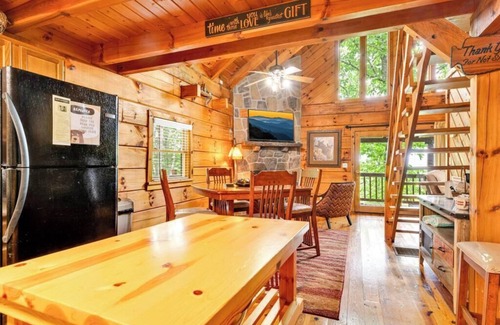 Need some fresh air? Step out onto the back covered porch to breathe deeply while you 'set a spell' on the old fashioned rockers, taking in the view as you let the stress of the day fall away. Grab a beverage and soak up some time in the bubbling hot tub, easing your mind and spirit after a day of hiking, shopping, and exploring nearby attractions such as the Island at Pigeon Forge, Ripley's Aquarium of the Smokies, and world-famous Dollywood.