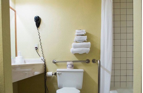 ✦ Your room is 301 sq. ft, equipped with complimentary toiletries, standard quality 43-inch TV, available with Standard cable.
