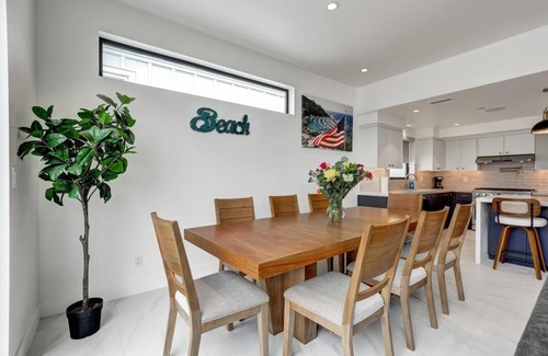 This brand new Newport Beach house, completed in July of 2025, and just steps to the Beach or the Bay boasts 4 inviting bedrooms, 3 of which have a king bed, and 1 with a bunk bed system (with a queen on bottom and a double on top). There are 3 full bathrooms with tub/shower, (the masterbedroom having a double wide jucuzzi tub) and a half bath near the kitchen/great room. Guests can relax in the soothing ambiance of this terrific property either in the kitchen/dinning/front room which will easily seat 10 guest or just hang out on our third floor covered patio equipped with gas BBQ, vanity/sink, large flat sceen tv, terrific view, and 7 person jucuzzi tub. The kitchen is set up for any style of cooking complete with most anything you may need with all the modern conveniences This custom home comes complete with AC, heating, washer/dryer, iron/board, EV charger, beach chairs, some beach toys and towels, a cover all canopy to set up on the sand. There are 5 large flat screen TV's that are set up to stream your own personal platforms, such as Netflix, Amazon prime, Disney,,,ect, The elevator can take you from the garage to the third floor. The house comes with a full one car garage and a carport, but there is plenty of free parking all round the neighborhood.
