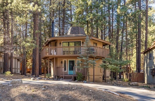 Experience the charm of Snow Summit at our newly remodeled Hexagon Cabin, located just a short walk away from the resort. The open living area boasts high ceilings and a natural skylight, while the open kitchen features brand new quartz counters and stylish glass subway tile. You'll love the modern bathrooms, complete with quartz sink tops and elegant tiled glass showers. Step outside onto the wrap-around decks with a propane BBQ, and take in the serene mountain ambiance.