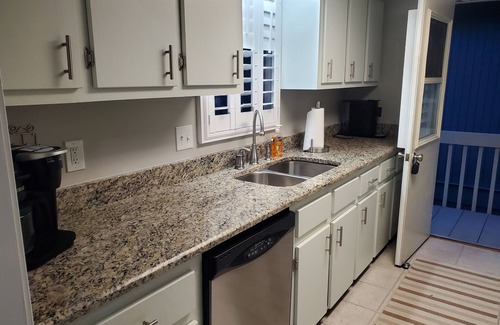 Just a few minute walk to the famous Ocean Annies's and the beach. This had been a private residence for decades and we decided to let others enjoy our place. Updated kitchen and baths. All new furniture - we prefer space over clutter so this unit is sparsely furnished with new leather couch and two swivel rockers, super comfortable gel foam mattresses.