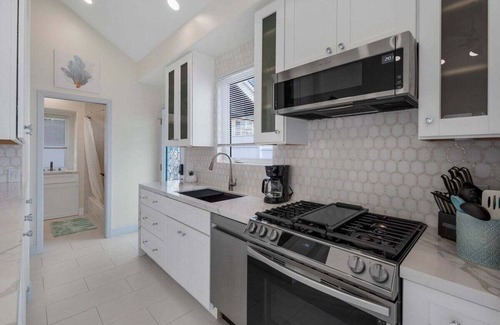 Welcome to The Shining Sea! This new and charming one-bedroom, one-bath beachfront cottage is located steps from the beach in Downtown Oceanside. Enjoy a cozy bedroom, a fully equipped kitchen, and a comfortable living area with fireplace and ocean views. Relax on the private oceanfront patio or explore nearby restaurants, shops, and the historic Oceanside Pier. With modern amenities, including Wi-Fi and free laundry, The Shining Sea is a perfect seaside escape.