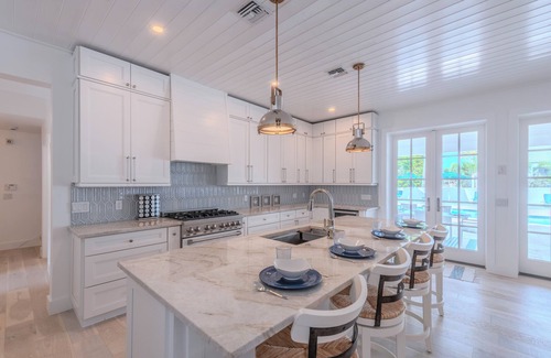 Experience the ultimate Naples getaway in this beautifully designed 4-bedroom, 5-bathroom home, just a 10-minute walk to Vanderbilt Beach and the Ritz-Carlton. Perfect for families or groups of friends, this fully renovated farmhouse-style retreat sleeps 13 and offers the ideal blend of luxury, comfort, and coastal charm.