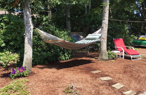 Take our beach buggy and sand chairs on a one minute walk to a deeded private section of family friendly Popponesset Beach. Kids and pets will enjoy the spacious front yard or fishing at Deans Pond just at the end of the street. Fishing equipment, canoe, kayaks, shellfish rakes and baskets, mountain bikes all available for your use and enjoyment. Parents will enjoy a short walk to the Popponesset Inn/Marketplace or relaxing in the hammock in a quite back yard.