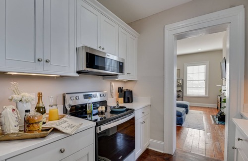 The historic Stovall-Barnes House is a short walk from the Savannah River, the medical district, the Cyber Center, and many of the city's most dynamic entertainment venues, restaurants, and museums. This charming home retained some of the original wood floors, mantels, windows, and moldings and boasts 12' ceilings. The new modern kitchen includes granite countertops and stainless steel appliances. Includes stackable w/d, smart TVs, wifi, plush linens, and gated off-street parking. When you enter the gated parking area in the back of the home, you will see a beautiful outdoor common space that has a masonry fireplace, a gas grill and a covered seating area. When you enter the back door of the building, you come into a grand common foyer with a beautiful, original staircase. The foyer gives way to 4 individual private apartment units that are completely separated from each other. Each unit hosts it's own living space, kitchen and bedroom(s) and bathroom(s). This unit is in a building with other VRBO listings. If you are in search of a place to house a large group for a wedding, girls weekend, family reunion or business function, this is an excellent choice. Each unit, however, is it's own separate apartment that is completely private from the other units. Message us for more details and receive the link to book directly.