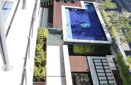 Yes, this Strand Beachside 903 has a swimming pool. Check the Facility Overview section for details about the pool and other available facilities.