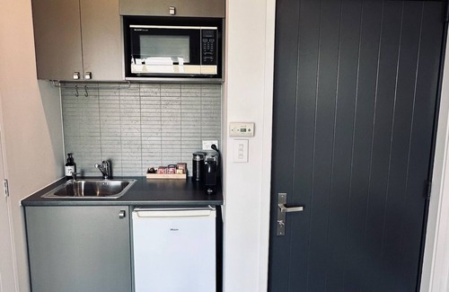 Situated on the top floor with its own separate entrance, offers hosted self-catering style accommodation. It is studio style with a queen bed facing outward to enjoy views over the Moutere Inlet and Kina Peninsula beyond with stunning sunrises that are hard to beat. Our rooms are warm and relaxing with modern furnishings and have a fully equipped kitchenette.