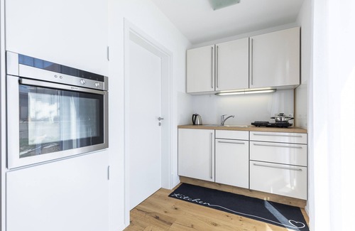 The 24 m² accommodation is located on the ground floor of a family house newly built in 2022 and consists of a living/bedroom with a double bed and a sleeping chair (folded out with dimensions 77x190 cm and thus suitable for children/young people), a well-equipped kitchen and a bathroom and thus offers space for 3 people. The amenities also include high-speed WLAN and a TV. The wifi is suitable for video calls. The apartment also includes a private open terrace. The apartment has a step-free interior. Towels and bed linen are provided.