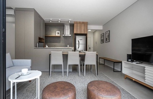 This studio located in the heart of Floripa is the perfect combination of practicality and comfort in one of the quietest areas in Floripa. The apartment is functional and has a full kitchen, full bathroom and air conditioning. The building is modern and has a swimming pool, coworking, laundry room for an additional fee that you can enjoy during your stay. You will be a few meters from Avenida Beira Mar Norte, a great place for walking.