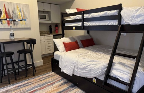 The studio features a comfortable sleeping area with a twin over full plush bunk bed, perfect for unwinding after a day at the beach. Prepare simple meals and snacks with ease in the kitchenette, equipped with a mini-fridge, microwave, stovetop, and essential utensils. Stay connected with free Wi-Fi and enjoy your favorite shows on the flat-screen TV. Free parking is available on the premises for your convenience. Guests have exclusive access to the entire studio unit, ensuring privacy and a comfortable stay. Our studio is located in a quiet, friendly neighborhood, just a stone's throw away from the bustling North Wildwood beaches. Explore local dining options, shops, and attractions all within easy reach. Please note that this is a no-smoking and no-pets property. Book now and make the most of your North Wildwood beach escape! Whether you're here to soak up the sun, explore the local attractions, or simply relax, our cozy studio is the perfect base for your adventures. This property is in the process of being updated with new furniture and photos.