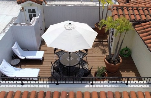 This condo is located in the towns only five star hotel - and one of four rooms in the hotel with a private set of stairs that takes you from the second floor to a locked gate which opens to your private terrace with lounges, table and chairs. You continue into your studio with king size bed and fully equipped kitchenette. Please view the picture to see the beautifully appointed space which promises to be your very special hideaway.