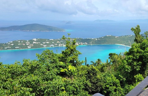 Guests can enjoy the Estate's outdoor entertainment areas, including a serene waterfall pool, a massive jacuzzi, and an additional smaller jacuzzi, as well as an outdoor fireplace. Front door parking is ample and convenient, and the Estate is within easy reach of the airport, downtown, beaches, and the best restaurants on St. Thomas.