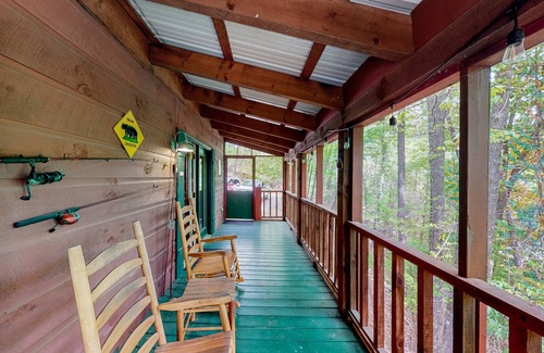 Enjoy life at a slower pace at The Lazy Nutt Retreat, a stunning two-bedroom cabin near Pigeon Forge. With its secluded location in a woodland area next to a pond, you will find it easy to relax. Gatlinburg shopping and breath-taking hikes through the Smokies are also within easy reach.