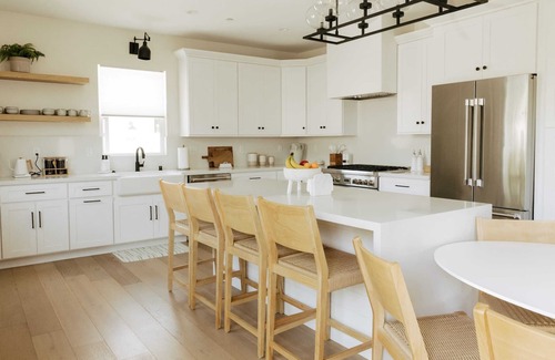 This beautiful space has been designed with families and modern travelers in mind. Guests will be amazed by the gorgeous design, hotel style beds and linens, rooftop deck with views of the ocean, brand new jacuzzi, outdoor shower and fire pit, and large common areas comfortable for groups to relax after a day on the white sand beaches of Carlsbad.