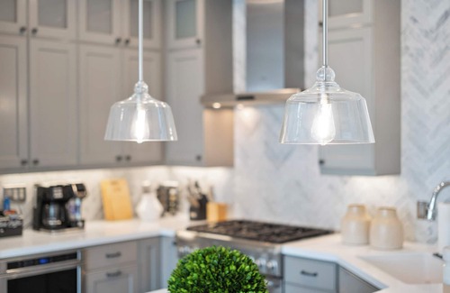 Prepare delicious meals in our fully equipped kitchen, featuring stainless steel appliances and all the cookware, dinnerware, and utensils you need. The dining area provides a cozy spot to enjoy your meals together.