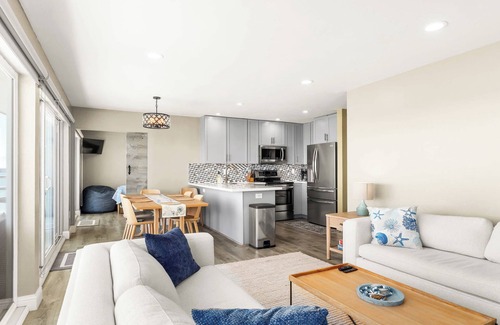 Soak in the breathtaking panoramic views of Monterey Bay from this 3-bedroom, 2-bath apartment that sleeps 6 (Permit #251170). Enjoy a cozy living room, fully stocked kitchen, and a private balcony with outdoor seating & a BBQ—perfect for oceanfront sunsets, morning coffee, and relaxing coastal vibes. Just a short walk to the beach, local restaurants, coffee shops, and more! Enjoy the complex’s shared pool (heated from Memorial Day to Labor Day).