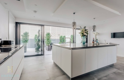 Harbour Escapes are proud to offer 'Vista Baia’, a contemporary luxury residence just 50m from Poole Harbour and beaches. This house has harbour views from the principal rooms with a large living space featuring kitchen, dining area and lounge, with sun balcony and a private rear patio with BBQ. This house features 5 bedrooms, including a children's play/bunk room and a breathtaking roof terrace. Finished to an exceptional standard. Overlooking Sandbanks and just 2 minutes walk to the beach.