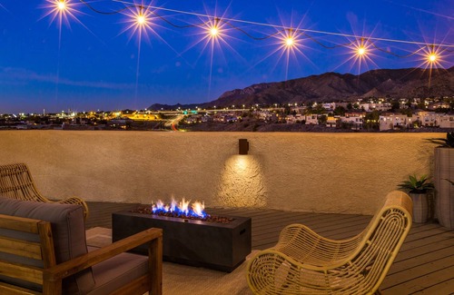 Views, Views, Views…stunning city and Sandia Mountain View’s! Enjoy a huge balcony/patio with fire bench and string lights to give you the perfect ambiance while gazing at views of all of ABQ. Newly renovated home from top to bottom - fireplace in living room - modern cook’s kitchen - two car garage. This gated community is located right off I-40 for quick access to anywhere in town. PAAko golf course approx 25 minutes, ABQ Studios approx 25 minutes. Uptown Shopping 12 minutes, Old Town Plaza 20 minutes and 18 minutes to Nob Hill shops and restaurants! Also located right near the Sandia Mountain Foothills/East Mountain for amazing hiking and biking.