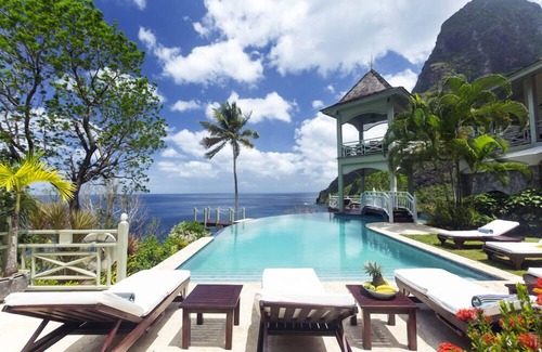 Arc en Ciel is a luxury 5 bedroom 5.5 bath villa situated in the valley between the impressive Piton mountains in Beau Estate, Soufriere.