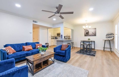 Newly updated 1bed/1ba in Heart of North Dallas. Granite countertops, spacious living room, 1 large with king bed. Gated community living. Fully setup kitchen with Washer/Dryer & Fridge. Desk Workspace, 400mbps wifi! 2 Smart TVs