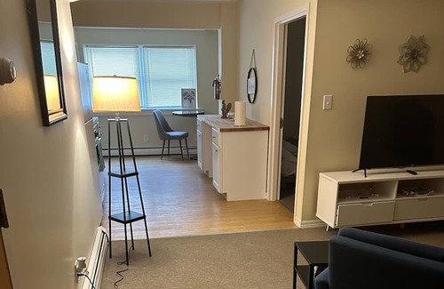 Perfect 1 bedroom, 1 bath apartment right in the heart of Rutland, only 20 mins from Killington ski resort, 13 mins to Pico ski resort, 38 mins to Okemo resort. This is a very unique unit for a couples vacation to the mountains. This unit features a fully equipped kitchen, WIFI for all your internet needs, a smart TV, queen size bed, and couch for lounging during the day. This is a great place to stay for skiing at local resorts. Fireplace is strictly esthetic and is non functional for guest and resident safety. It does add a nice touch to the unit though. Come stay with 3 Gen in Rutland and enjoy your mountain retreat!