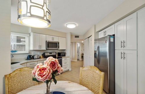 Enjoy comfort, convenience, and sunshine at this beautifully refurbished condo just 1.5 miles from the award-winning shores of Pass-A-Grille and St. Pete Beach. Located just 26 steps from the sparkling heated pool and surrounded by peaceful walking paths and fountains, this thoughtfully maintained home offers everything needed for a relaxing long-term getaway. From cozy indoor comforts to unbeatable access to local attractions, this is the ideal retreat for beach lovers and snowbirds alike.