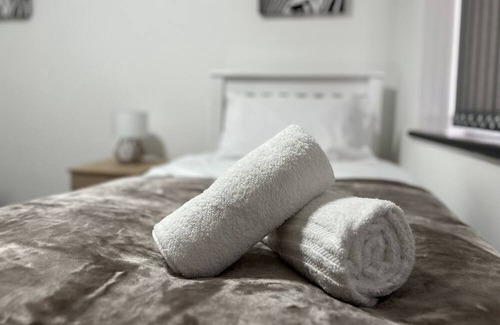 A 2-bed haven close to NEC and BHX blending style and convenience. Impeccably designed, our oasis features a cozy living area with a 42" Smart TV and a fully equipped kitchen. Bedrooms boast 400-thread-count luxe bedding for restful nights. In a vibrant neighbourhood, shops and restaurants are steps away. Ideal for business or leisure, book now for a perfect blend of home comfort and urban excitement!