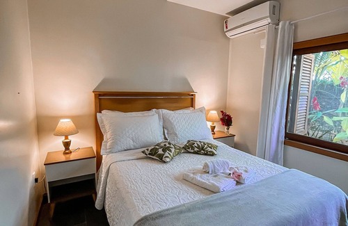 Fully equipped units for couples and families in a guesthouse located 200 meters from Campeche Beach in Florianópolis! Zen atmosphere, with a beautiful garden, pool, fireplace, lots of contact with nature, perfect for relaxing and a delicious breakfast. A la carte options are also part of our Concept.