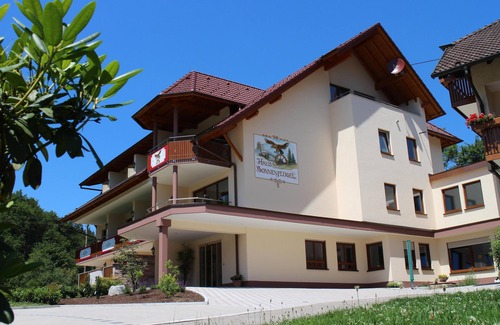 Unser Haus liegt in ruhiger, idyllischer Lage am Waldesrand 450 m ü. d. M. Ruhe und Erholung zu jeder Jahreszeit sind garantiert. Für Freizeitaktivitäten stehen Ihnen Tischtennis, Solarium, Saunalandschaft, eine Liegewiese und ein Kinderspielplatz zu Verfügung. In der Nähe: Bäder, Massagen, Kuranwendungen. Die bekannt gute Küche serviert Schwarzwälder Spezialitäten. Die Hausschlachtung garantiert Qualität und Frische. Auf unserer herrlich gelegenen Gartenterasse genießen Sie ein z��nftiges Vesper oder leckeren, selbstgebackenen Kuchen.