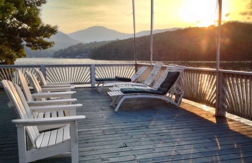 So we are nestled in the Blue Ridge Mountains of the Appalachian Chain, on the crystal clear, emerald waters of one of the most beautiful lakes in the world (National Geographic 1954), our lake front cottage's perfect location allows for active as well as 'laid back' vacationers during all seasons. With three, 18 hole golf courses in a three mile radius, municipal tennis courts, horseback riding, sight seeing, shopping, water sports, and wonderful restaurants within in a 20 minute drive, our guests can play till they drop.