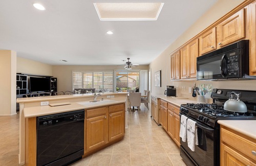 ( with queen sofa bed). Sun City, Palm Desert, offers an amazing 80 clubs for interests such as Yoga, Photography, Quilting, Technology lab, along with 3 expansive Club House facilities with pools, rec centers, tennis, pickleball, two 18 hole golf courses etc. The cozy bedrooms in our home feature 1 king , 1 queen , and 1 queen sofa bed (in the den), ensuring a comfortable stay for all guests. Our home is equipped with amenities like, AC, WiFi, fully equipped kitchen, 70 inch TV, entertainment center and a wonderful backyard, with a waterfall, out door dining, large grill, and hot tub. Your stay will be enjoyable and stress-free. You can be as active or relaxed as you want. We have you covered. 20 min to Coachella Festive.!