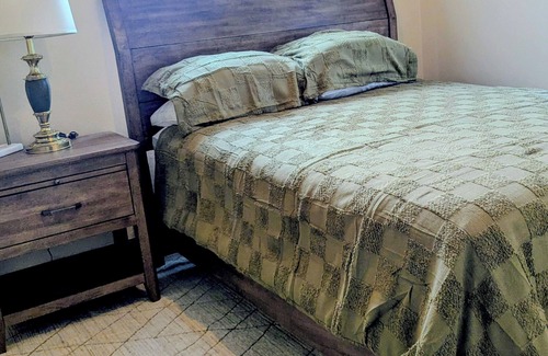 This cozy remodeled 1939 home overlooks the Red River of the North, just blocks from downtown Fargo/Moorhead and steps from miles of scenic river trails. The fenced yard offers private seating and outdoor cooking areas and lovely natural views. Warmly decorated, the two bedrooms offer blackout shades for great sleeping. The living room flows into and through the pass-through kitchen into a great room with dining and office space that can be used as an additional sleeping area.