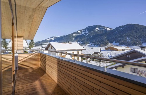 Our extravagant penthouse with fully south-facing glass front, offers guests with high standards a fantastic holiday home. Söll is literally at your feet. This unique view is best enjoyed with a glass of wine. In the process, the lighting of the trailer appears to be in the opposite direction and you feel that you are something special. In summer, our guests can relax by the private pool. The apartment is furnished with quality furnishings and the timber construction on sight gives warmth and satisfaction. The bedrooms are themed. Room TIROL with genuine natural wood furniture and traditional accessories. Room SNOWFLAKE "white furniture with wooden elements and cozy atmosphere. Breakfast on request Eur 12.00 / person (extensive farmer's buffet in the neighboring hotel) - Flat TV 140 cm with internet browser - unfortunately no pets allowed. In the summer we may spoil you with our heated stainless steel pool (7m x 3.5m). Covered guest area with relaxation loungers.