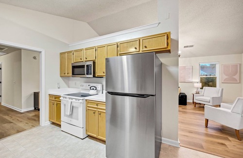 The kitchen is fully equipped with everything you need, including cookware, dinnerware, utensils, a knife set, toaster, Keurig coffee maker, blender, and cutting boards—ready for any meal you want to prepare. Linens, towels, comforters, duvet sets, and Wi-Fi are all included for a move-in ready experience.