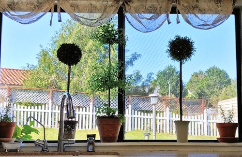 Large lovely ranch house with 3 bedrooms, living room, country kitchen, dining room , enclosed sunroom, large deck with Sunsetter awning, comfortable chairs and outdoor tables, & BBQ. Beautiful property! Three TV's, DVD, cable with movie channels, wireless high speed internet, full laundry, fully stocked kitchen, linens. Grocery, drugs store, hardware store, library, large county park 1/2 mile away. Located on the beautiful Central Coast just a12 minute drive to Pismo Beach, and about an hour's drive north of Santa Barbara. Nipomo has been selected by leading travel magazines as having the best year around weather in the country! Sunny days and cool nights! The backyard is now fully fenced to accommodate children and pets.