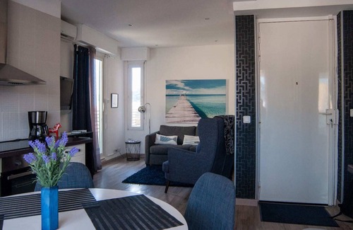 Sunny balcony with a view of the hills of Nice 1 bedroom, kitchen/living room is located in Riquier. Sunny balcony with a view of the hills of Nice 1 bedroom, kitchen/living room provides accommodation, featuring TV, Wheelchair Accessible, Balcony/Terrace, among other amenities. This Apartment features TV, Wheelchair Accessible, Balcony/Terrace, to make your stay a comfortable one.