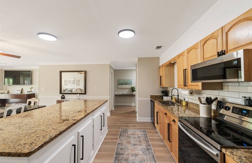 Prepare for the ultimate family trip when you book this Lakeside Sparta home with full access to beautiful Lake Sinclair! Situated on a 1 acre lot this 4200 Sq ft. home has 7 bedrooms, 3 full bathrooms, & 2 Full kitchens and 2 living rooms! Sleeps 18 in beds. This lakeside paradise has ample outdoor living space with a huge front porch equipped with ping pong table & large covered back porch with scenic views of lake. This is the perfect property to bring the whole family for a lakeside getaway!