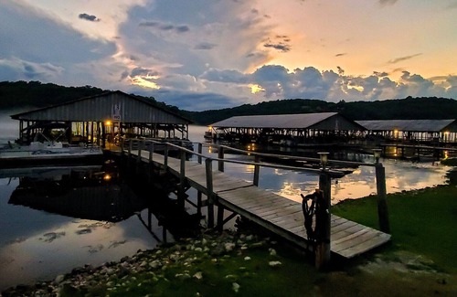 Only 17 minutes from Branson Mo. This cabin sits directly on Lake Taneycomo One of the Best Bass & Trout Fishing Lakes In the Ozark’s. Sitting on the patio night after night of this home will take your breath away from the beautiful sunsets... they are amazing! It also sit in one of the most peaceful resorts. We have a 9 hole frisbee golf course, horse shoe pits & out door swimming pool with Outdoor kitchen area and two pavilions by the lake to enjoy barbecue with your families & friends! We also have four Docks with fishing areas;) We also offer Pontoon & Fishing Boat, Kayak & paddle boat Rentals Our Resort is located at the end of Lake Taneycomo where our surface temperature is 70-73 degrees In the summer months so yes you can swim here! This end of the Lake is great for tubing, Jet skiing, and kayaking without a lot of boating traffic.