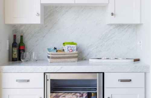 Open concept main living space is perfect for an extended family get away or a couples retreat. Freshly renovated kitchen features Wolf and Subzero appliances, and 8 foot island with seating for 4, beautiful hardwood floors and marble countertops. Living area includes a large custom sofa and a 70" Samsung smart TV. Additional sitting area with gas fireplace is great for reading any time of day or watching the sun set over the Pacific Ocean.